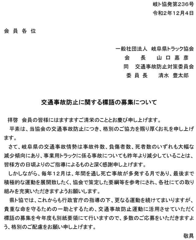 交通事故防止に関する標語の募集について【会員】
